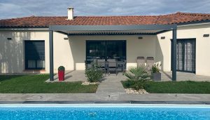 La société DCLS a installé au nord de Toulouse, chez le même client, un abri bas et une pergola pour aménager les abords de la maison et de la piscine.